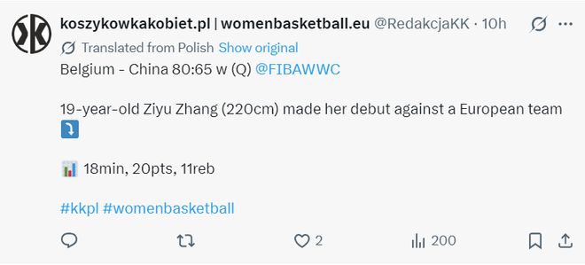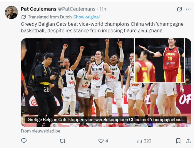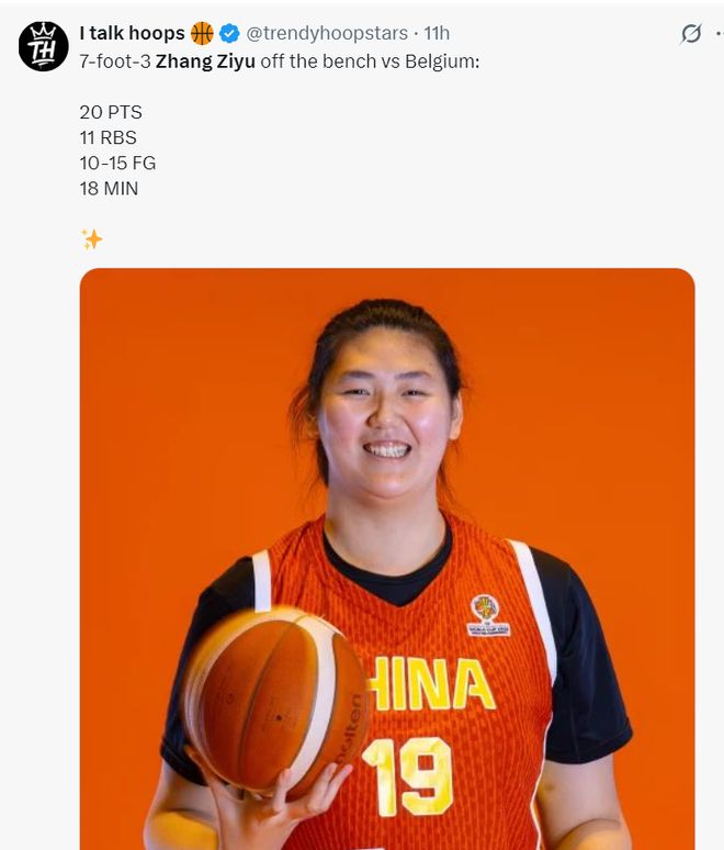 外媒寫道:比利時女籃擊敗了前世界杯亞軍中國隊,雖然中國隊的新星張子宇不答應打出不俗狀態。