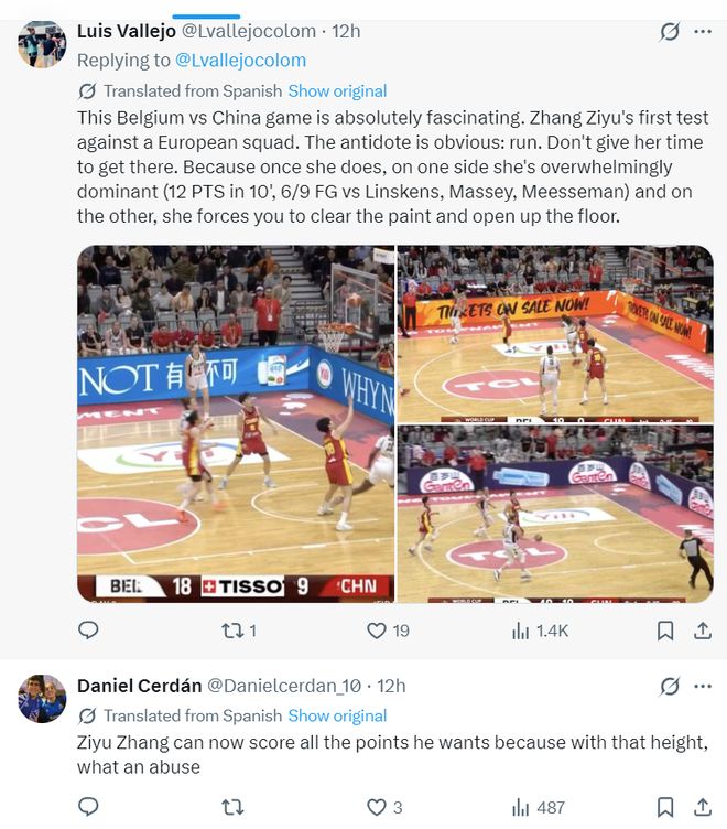 賽後張子宇的表現引發了全世界的媒體熱議,短短18分43秒,15中10,拿到20分11籃板5失誤,命中率69.6%,張子宇在內線就是予取予求的存在。