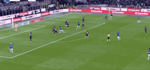 進球後的紅黑軍團氣勢大漲。第39分鍾,普利希奇在左路連續突破後下底傳中,薩勒馬克爾斯門前搶點射門,隻可惜稍稍高出橫梁,國米再度逃過一劫。半場結束,AC米蘭帶著1-0的領先優勢進入更衣室。