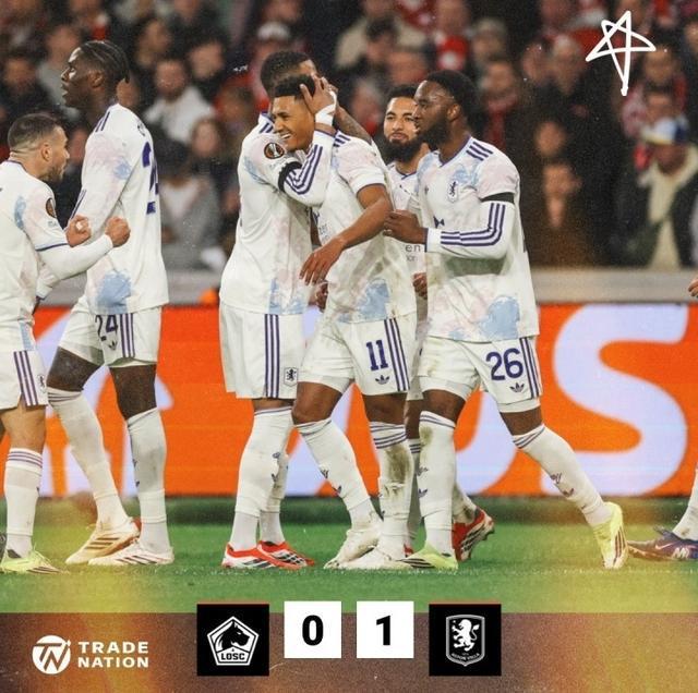 再來看向歐聯杯和歐協聯,阿斯頓維拉客場1-0驚險小勝法甲勁旅裏爾,憑借第61分鍾沃特金斯的製勝進球,為英超球隊保住了最後的臉麵。